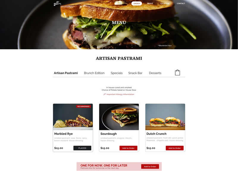 The website features an easy-to-use interface that allows customers to browse the menu, select their desired items, and place an order for pickup or delivery. Customers can choose from a wide variety of smoked meats, including pastrami, brisket, ribs, chicken, and sausage, as well as a selection of sides, salads, and desserts.